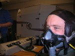 og først var det på med flightsuit og tilpassing av maske. Deretter ble vi koblet på ren okygen