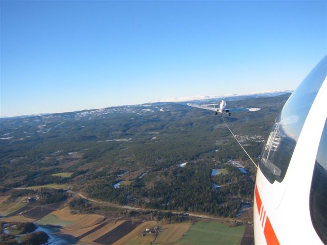 i hovedsak slept opp til 500-1000 meters høyde av et propellfly