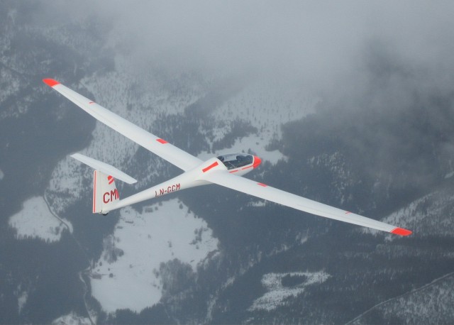 Fotoshoot med Tore Kvarme som modell i LS-4'en til DFK/S. Cruiser rundt i en bølge i ca. 2000m. |